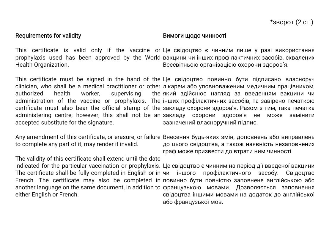 МОЗ України надає роз’яснення щодо Міжнародного свідоцтва про вакцинацію або профілактику: